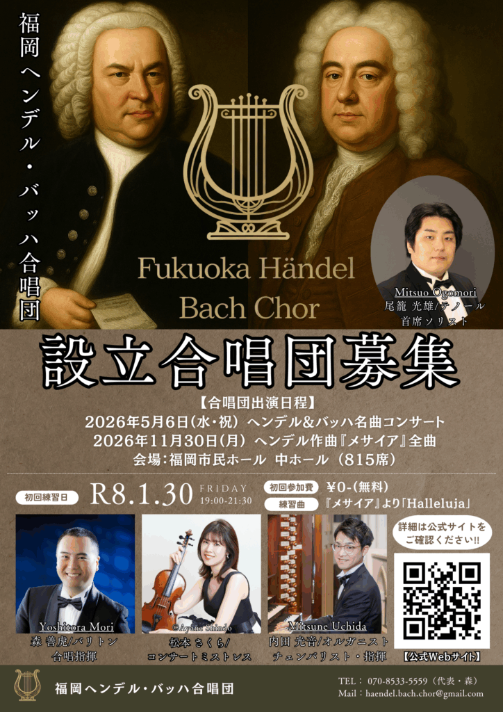 この度、多くの方のご協力のもと、福岡ヘンデル・バッハ合唱団を設立する運びとなりました。